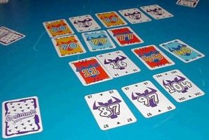 • Ak môže hráč priložiť svoju kartu k jednému radu vpravo a k inému vľavo, musí priložiť k tomu radu, kde je rozdiel medzi ležiacou a prikladanou kartou menší. ( Počíta sa absolútna hodnota rozdielu.)